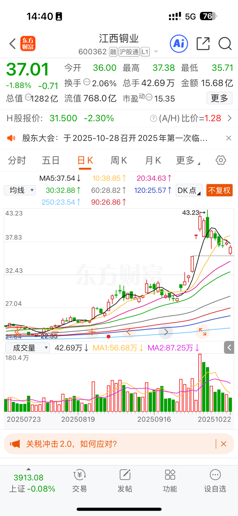 $江西铜业(SH600362)$ 等明天补上缺口再买35.49