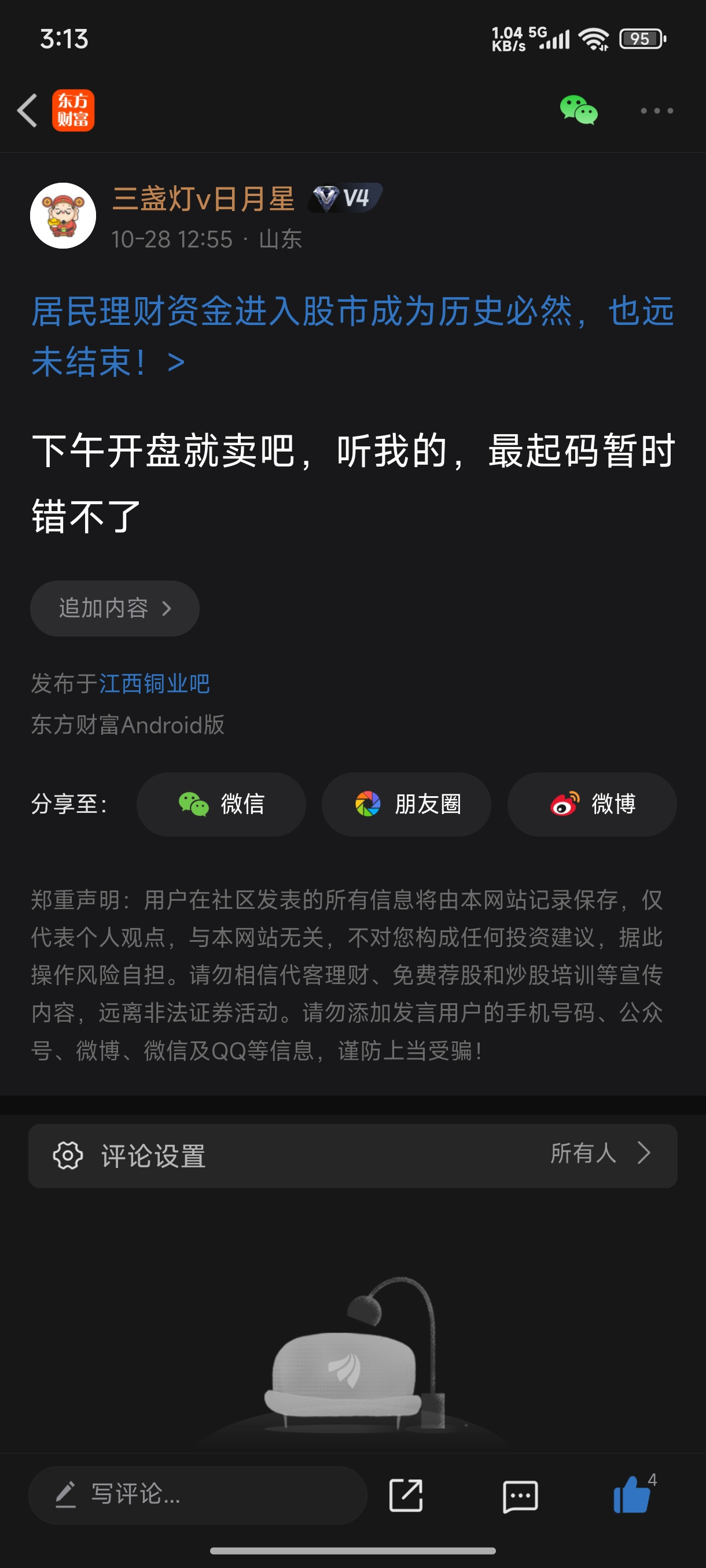 温馨提示: 1.根据《证券法》规定,禁止编造、传播虚假信息或者误导性信息,扰乱证券市场;2.用户在本社区发表的所有资料、言论等仅代表个人观点,与本网站立场无关,不对您构成任何投资建议。用户应基于自己的独立判断,自行决定证券投资并承担相应风险。《东方财富社区管理规定》