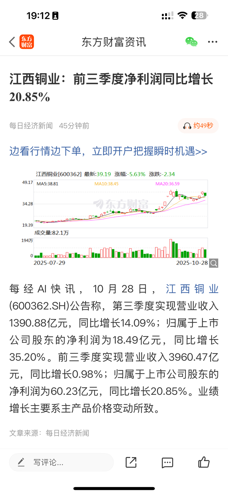 $江西铜业(SH600362)$ 大跌不会没原因的,业绩不及预期