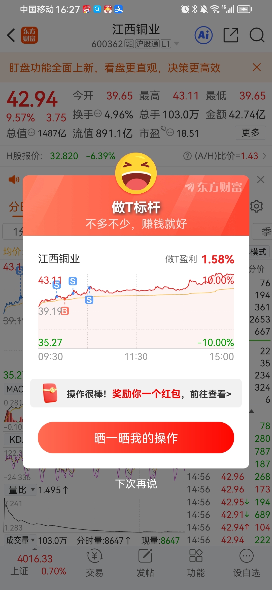 昨天建仓,今天来了一个大行情,卖飞一些仓位高抛低吸,低吸高抛