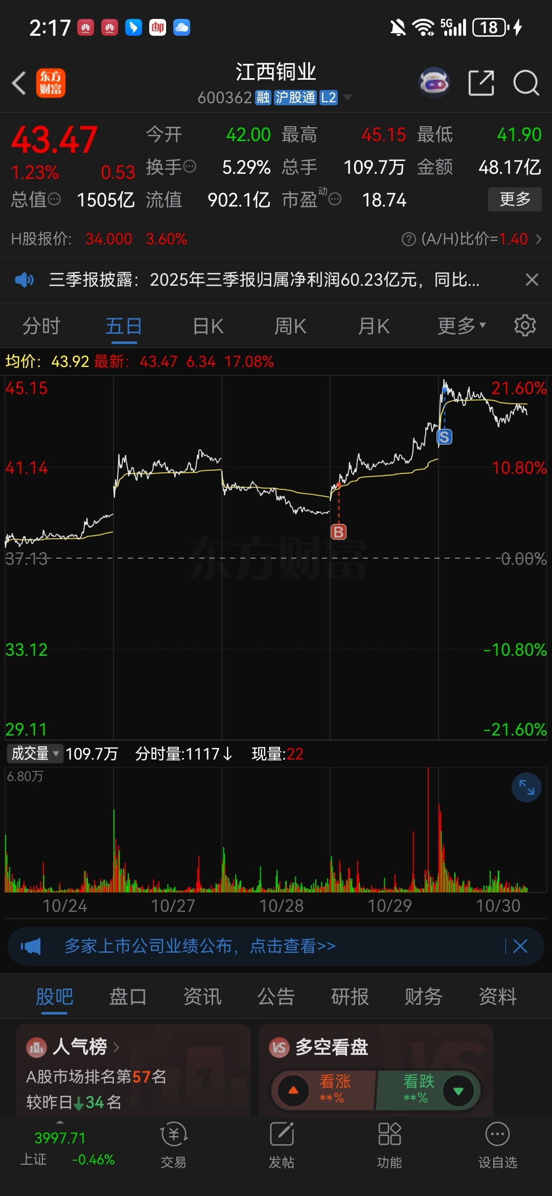 $江西铜业(SH600362)$ 坑啊,尾盘再考虑要不要买回了