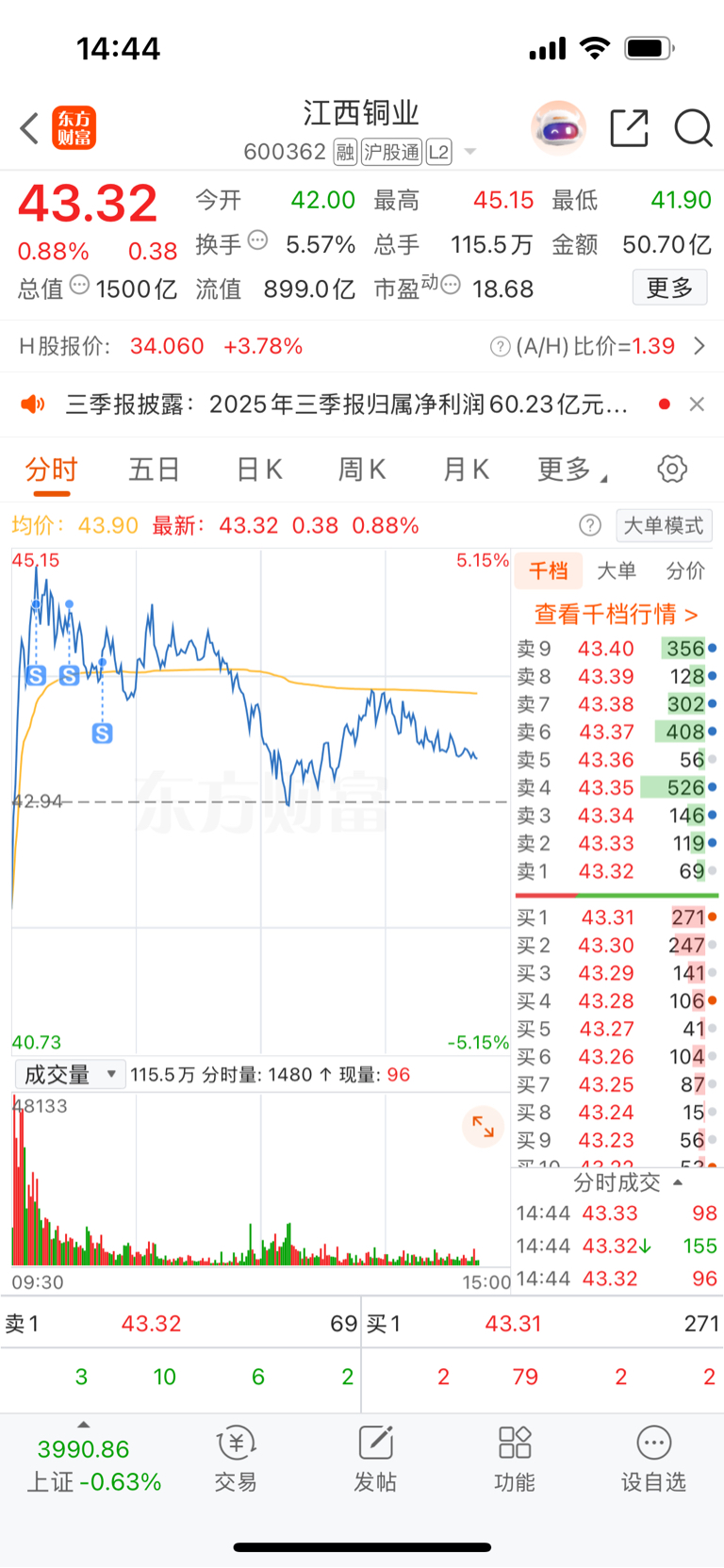 $江西铜业(SH600362)$ 虽然没有跑在最高点 始终是跑了