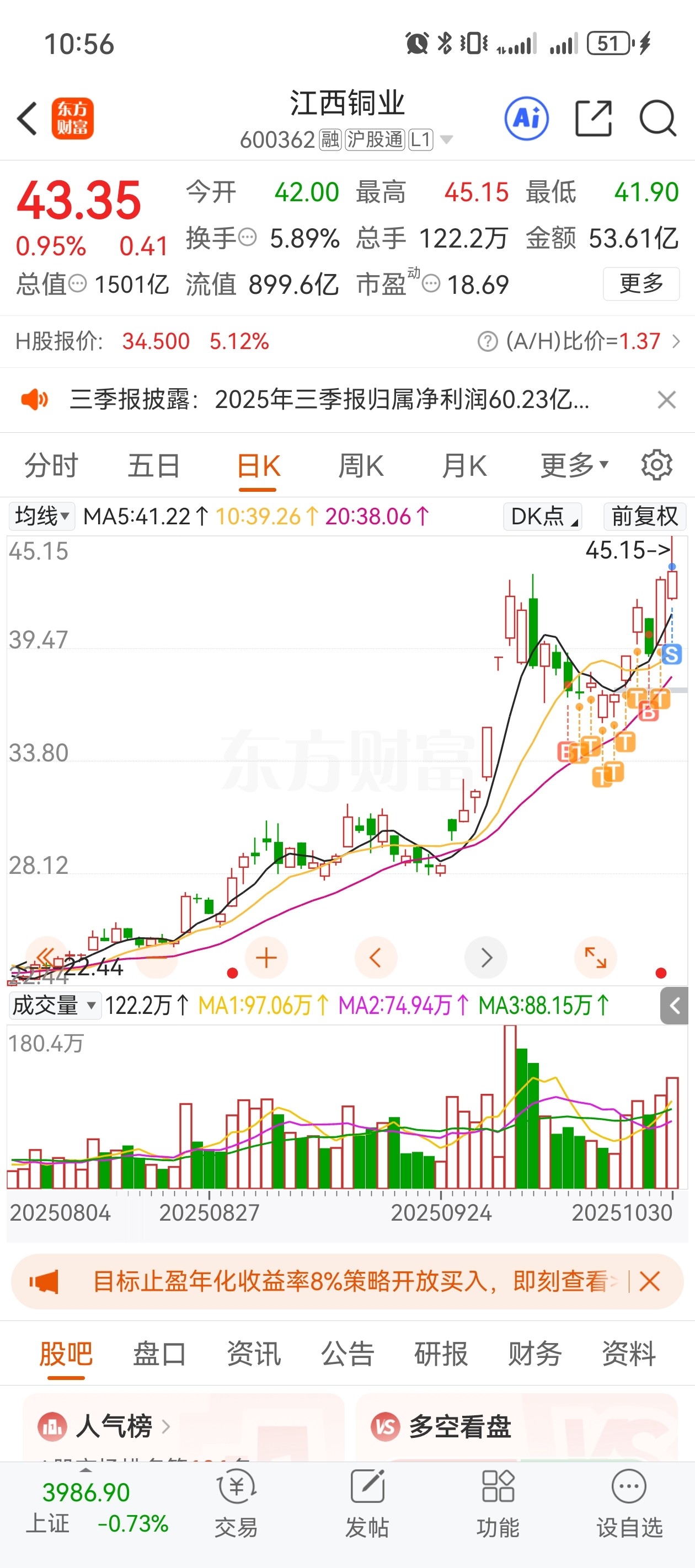 $江西铜业(SH600362)$ 今天逃顶,等你下来接
