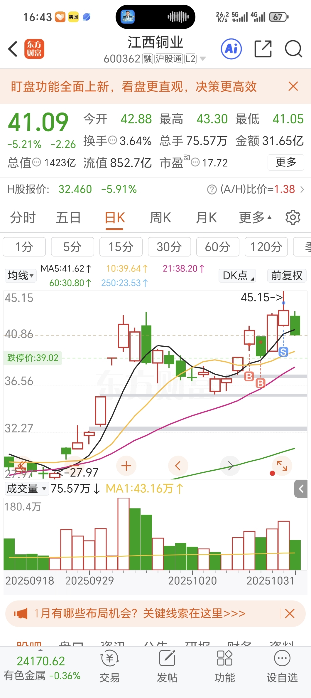 $江西铜业(SH600362)$ 我不懂啥技术,就是运气好了点