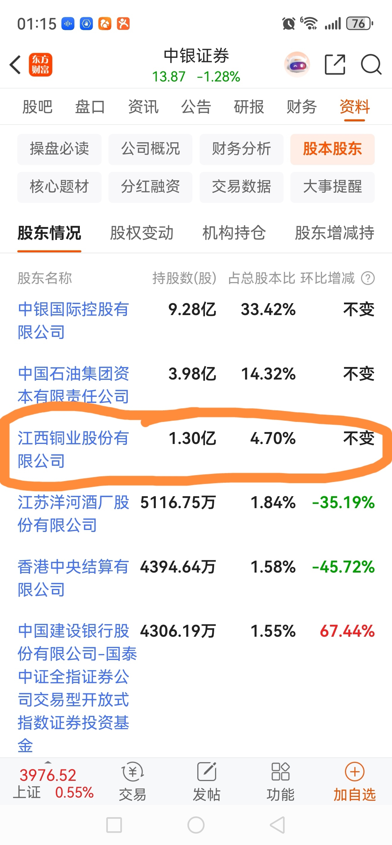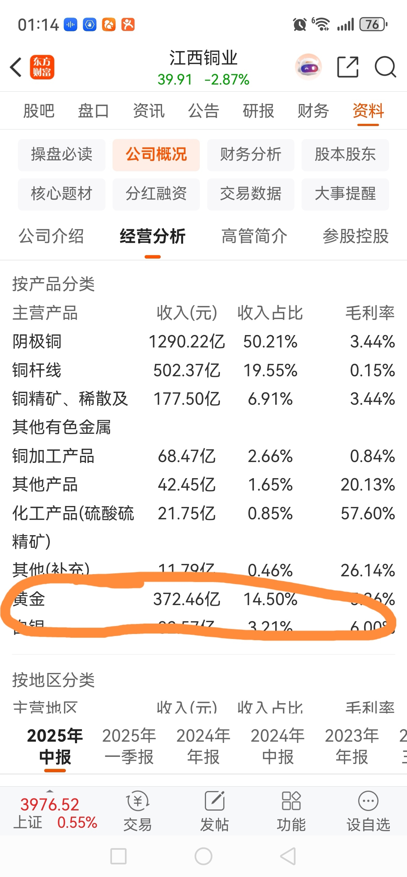 原来你主要产品就是铜,黄金,白银,并且还持有中银证券是第三大股东。龙头还是有真材