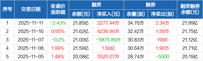 江西铜业:融资净买入2277.44万元,融资余额21.85亿元(11-11)