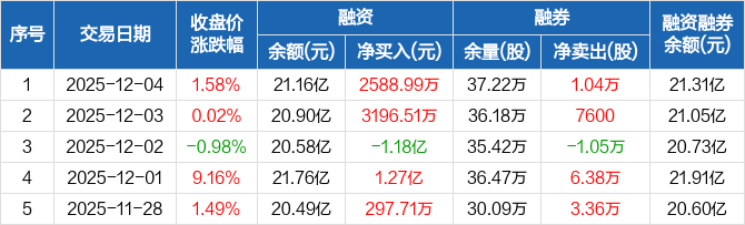 江西铜业:融资净买入2588.99万元,融资余额21.16亿元(12-04)