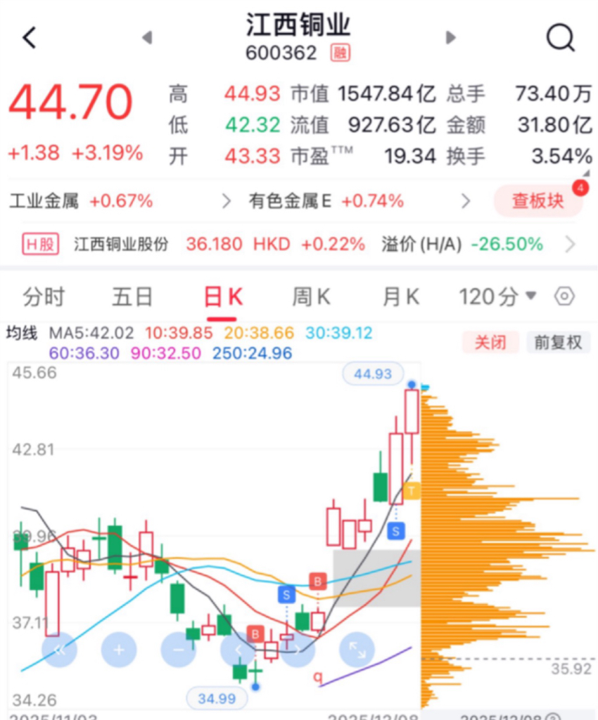 $江西铜业(SH600362)$ 继续看好 今天稍微卖掉一点