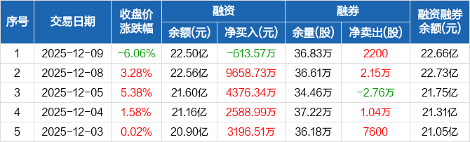 江西铜业:融资净偿还613.57万元,融资余额22.5亿元(12-09)