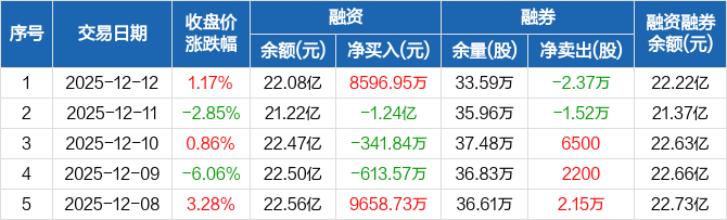 江西铜业:融资净买入8596.95万元,融资余额22.08亿元(12-12)