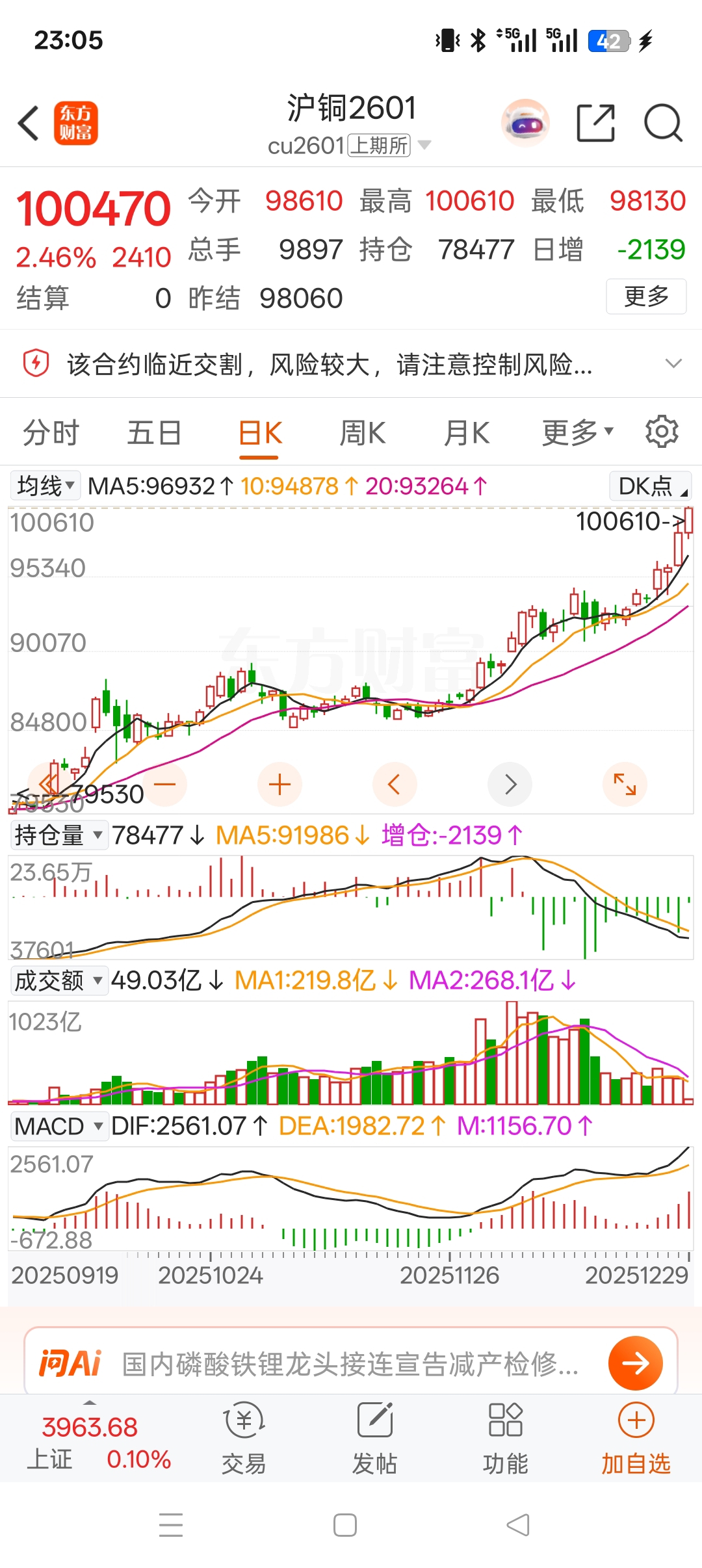 $江西铜业(SH600362)$ 我滴妈呀,太疯狂了吧,破10万大关了,而且看这走势,感觉越来越高。