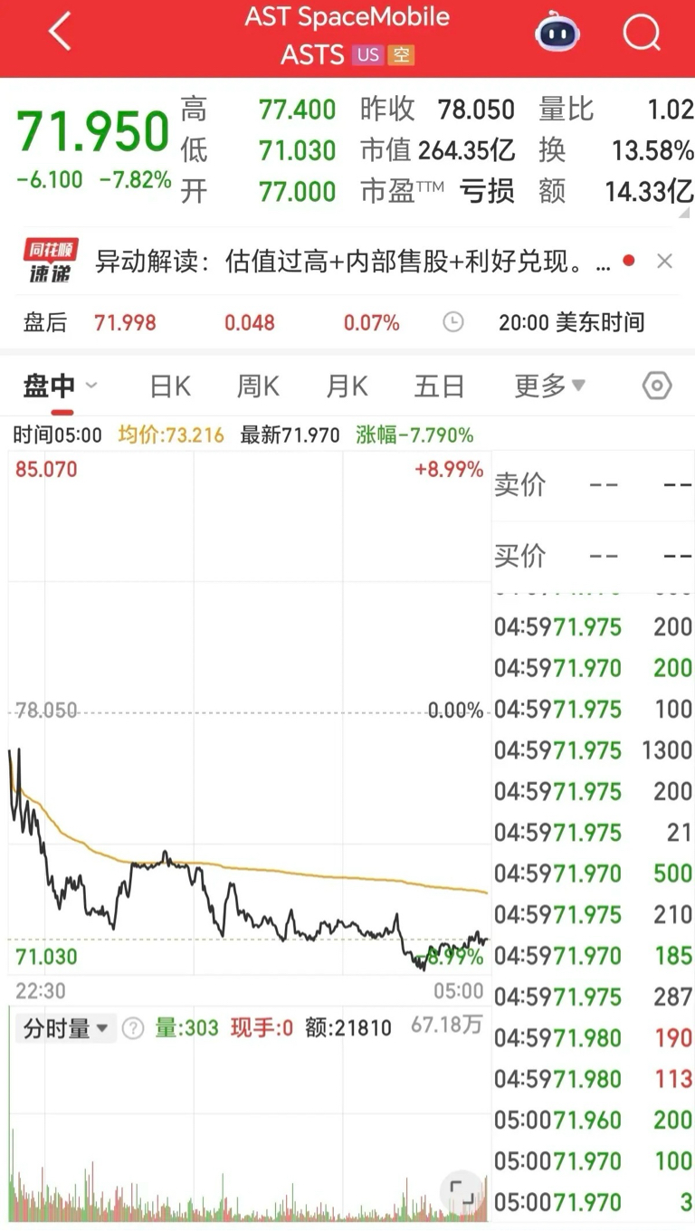 周五晚间,美股开盘,部分商业航天股票纷纷出现大跌,其中Sidus Space暴跌超12%,Rocket LAB USA跌8%,AST SpaceMobile跌近8%。