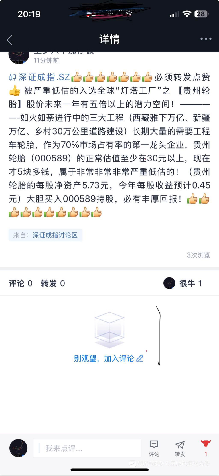 温馨提示: 1.根据《证券法》规定,禁止编造、传播虚假信息或者误导性信息,扰乱证券市场;2.用户在本社区发表的所有资料、言论等仅代表个人观点,与本网站立场无关,不对您构成任何投资建议。用户应基于自己的独立判断,自行决定证券投资并承担相应风险。《东方财富社区管理规定》