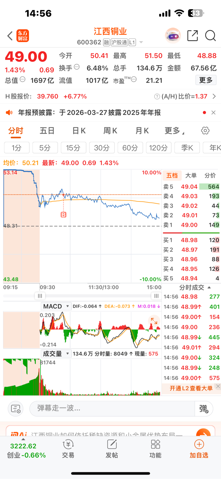 $江西铜业(SH600362)$ 见鬼了不及预期啊,明天又得割肉了
