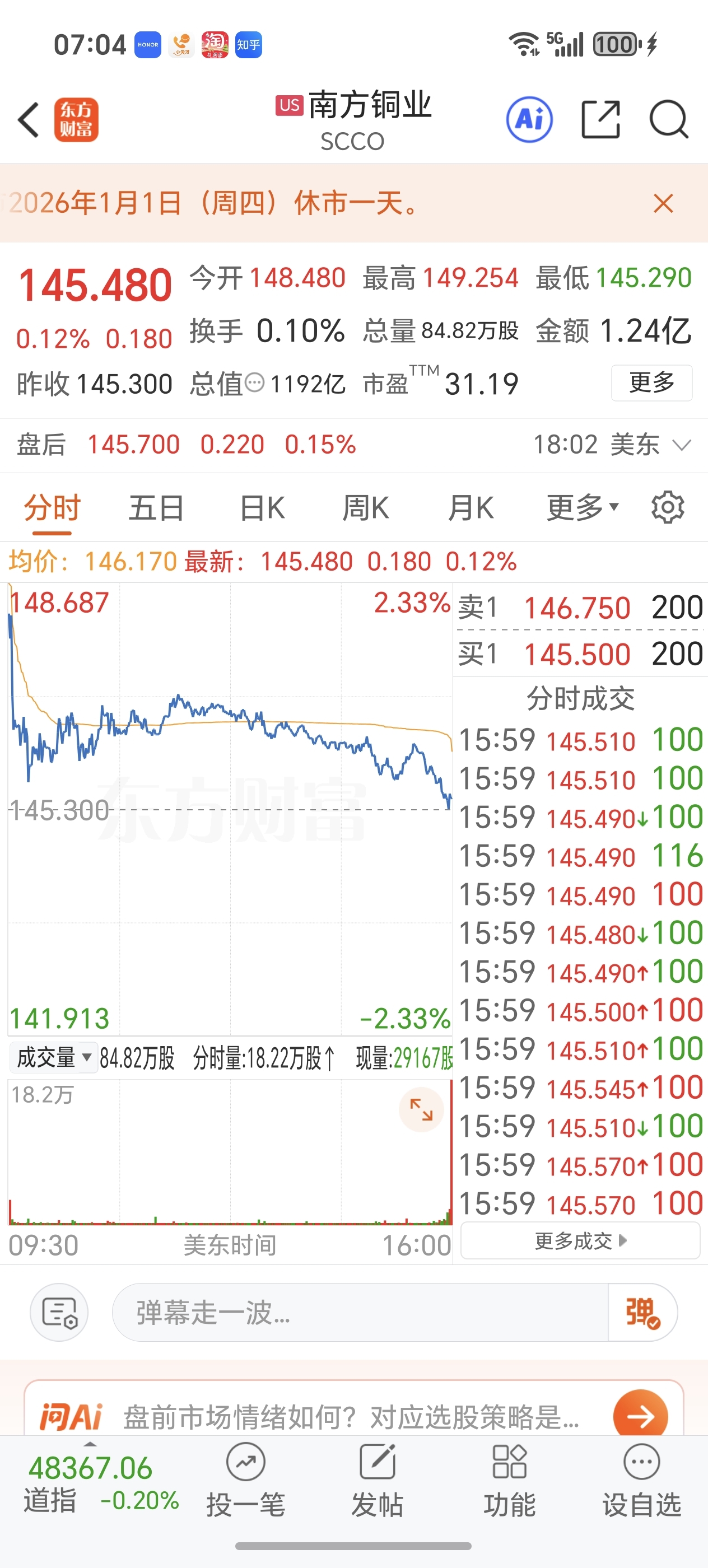 $江西铜业(SH600362)$ 昨晚美股三大指数收盘全线下跌,南方铜业开盘冲高回落下跌