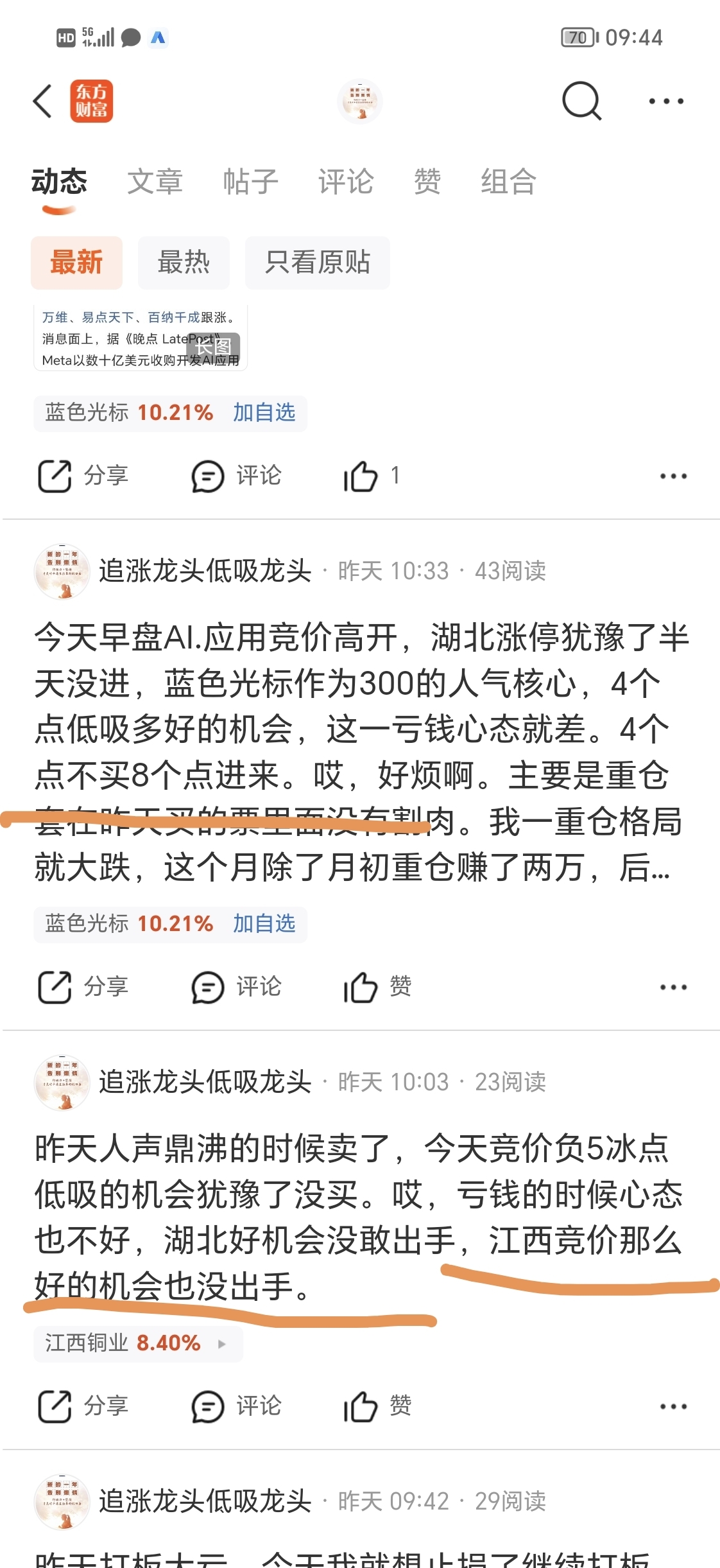 $江西铜业(SH600362)$ 前几天一直满仓有色金属,昨天竞价低吸能挣15个点。蓝色国标昨天四个点进来也是10几个点大肉。我只要重仓就跌,轻仓就大涨。哎,气死了
