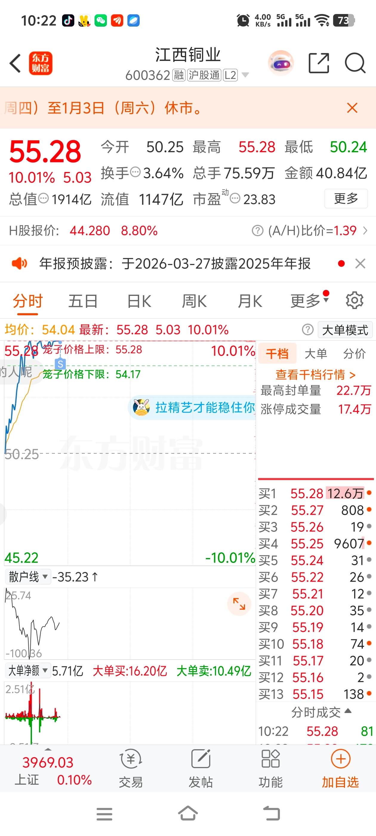 $江西铜业(SH600362)$ 我胆小先撤了,兄弟们发财