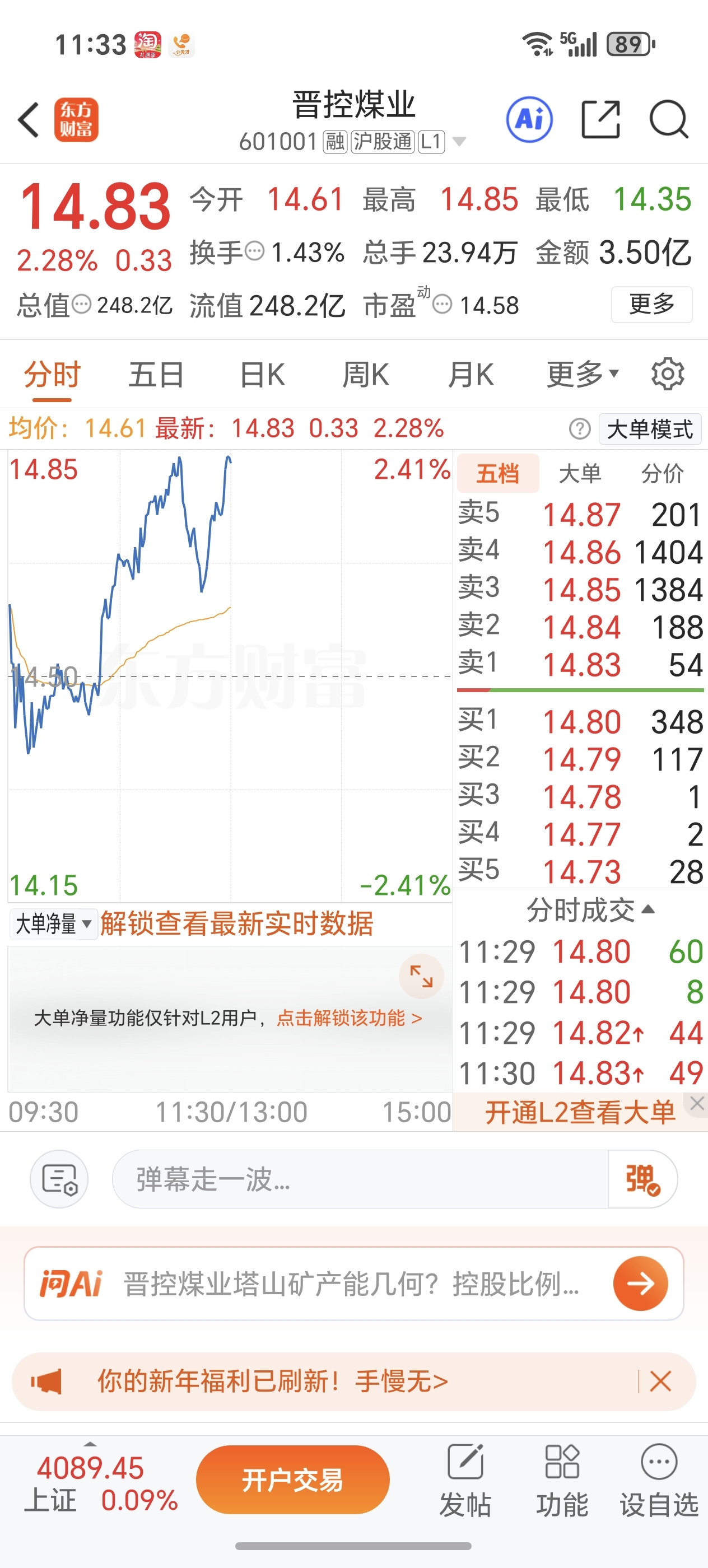 色舞完到煤飞了,昨天卖江铜建仓晋控煤业,今天继续加仓继续涨,爽歪歪