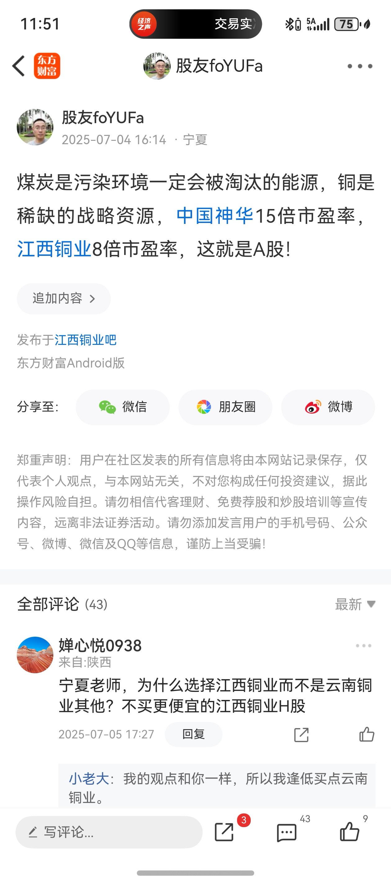 温馨提示: 1.根据《证券法》规定,禁止编造、传播虚假信息或者误导性信息,扰乱证券市场;2.用户在本社区发表的所有资料、言论等仅代表个人观点,与本网站立场无关,不对您构成任何投资建议。用户应基于自己的独立判断,自行决定证券投资并承担相应风险。《东方财富社区管理规定》