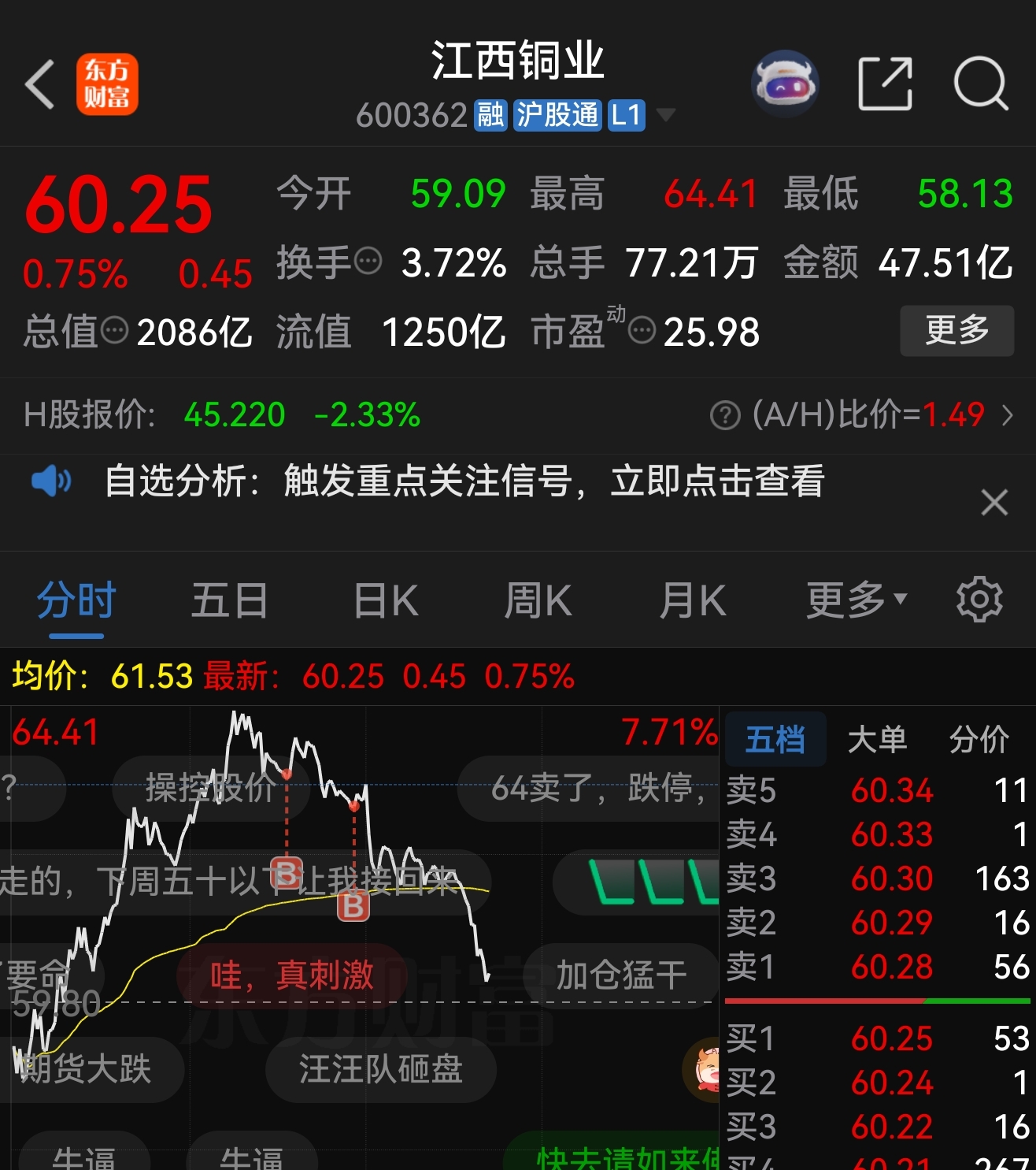 $江西铜业(SH600362)$ 其他地方大跌割了全仓进来又一下亏我五个点,真没法玩了
