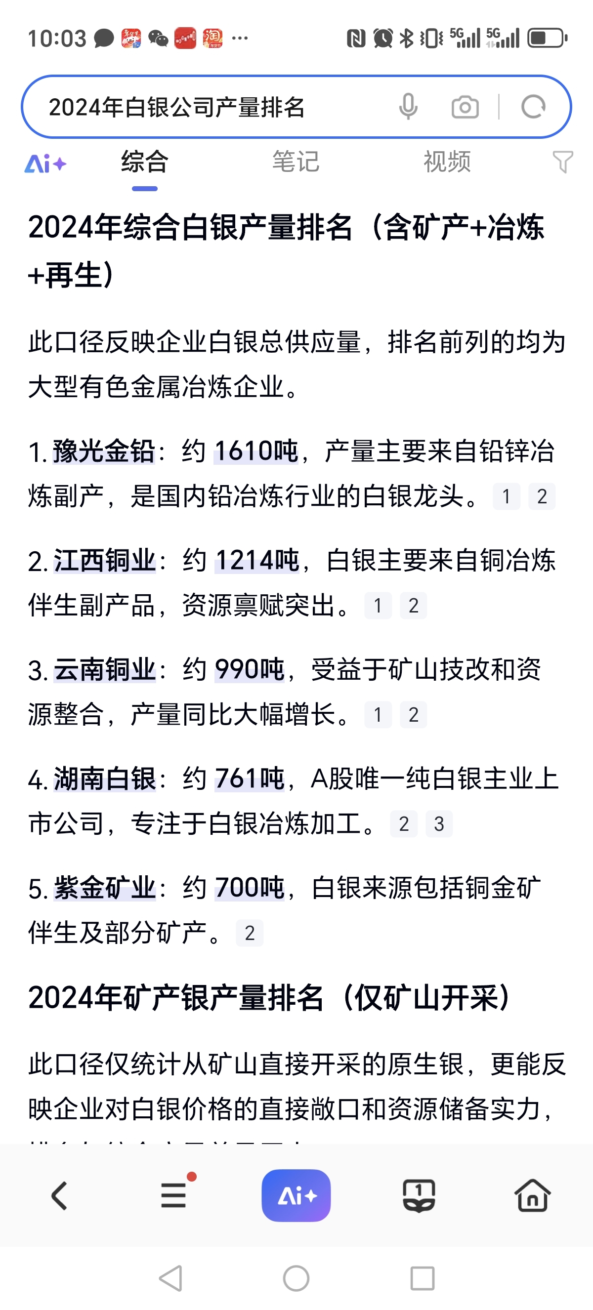 $江西铜业(SH600362)$ $江西铜业(600362)$ $豫光金铅(600531)$ $湖南白银(002716)$ 江西铜业2024年白银产量都是接近湖南白银的一倍了