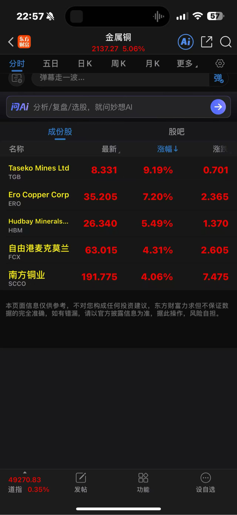 $江西铜业(SH600362)$ 今晚美股金属铜大涨5.06%,大单压个毛啊!明天大家一把吃掉空单,铜可能今年比金与银还猛啊!大家坐好别下车......