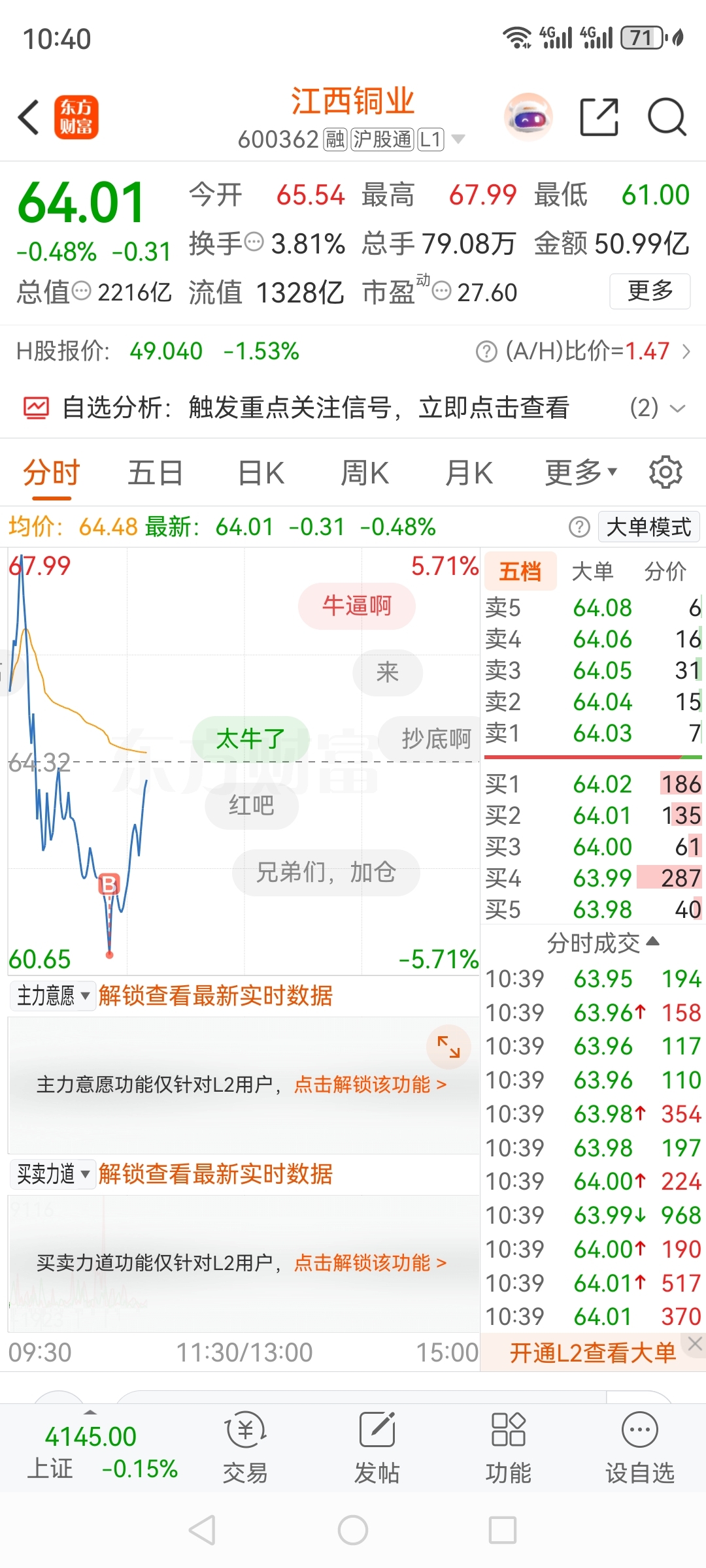$江西铜业(SH600362)$ 61 买进去我都吓了一跳。