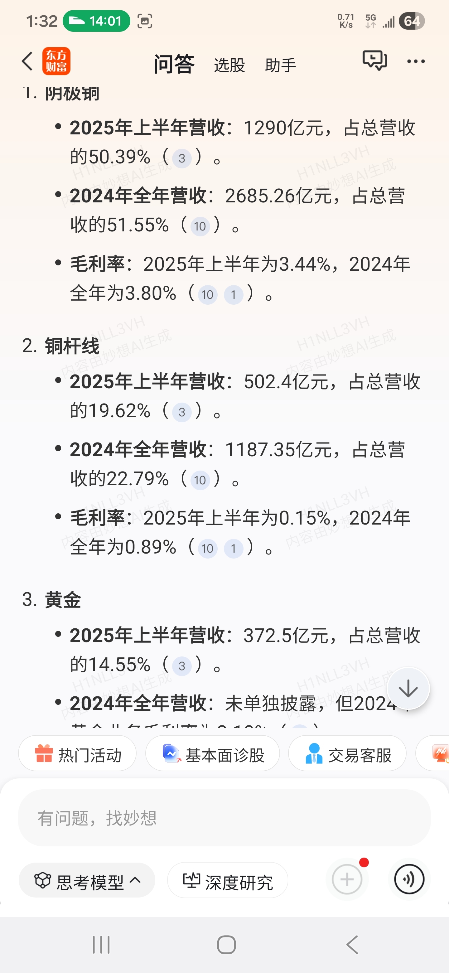 下周再跌停直接抄底,黄金业务占比15不到,白银忽略不计。铜期货价格比周4收盘价还