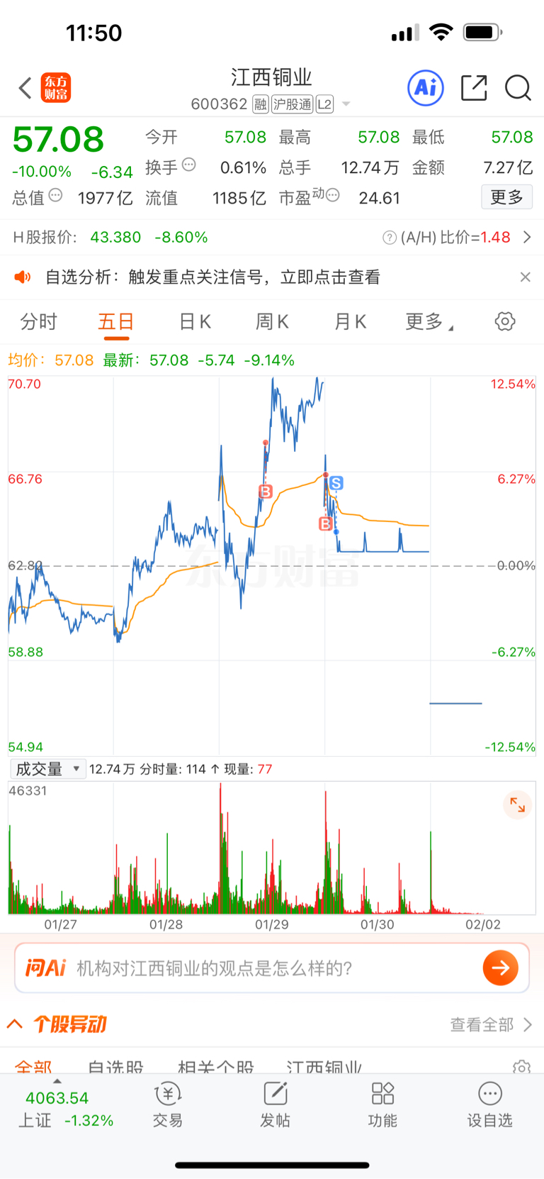 $江西铜业(SH600362)$ 躲过了宇航员,没想到当上了矿工,三板放人,明天放我出来吧,清仓过年了