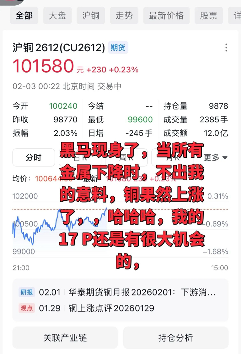 $江西铜业(SH600362)$ 今日最新消息,铜又涨了,站上了100000。