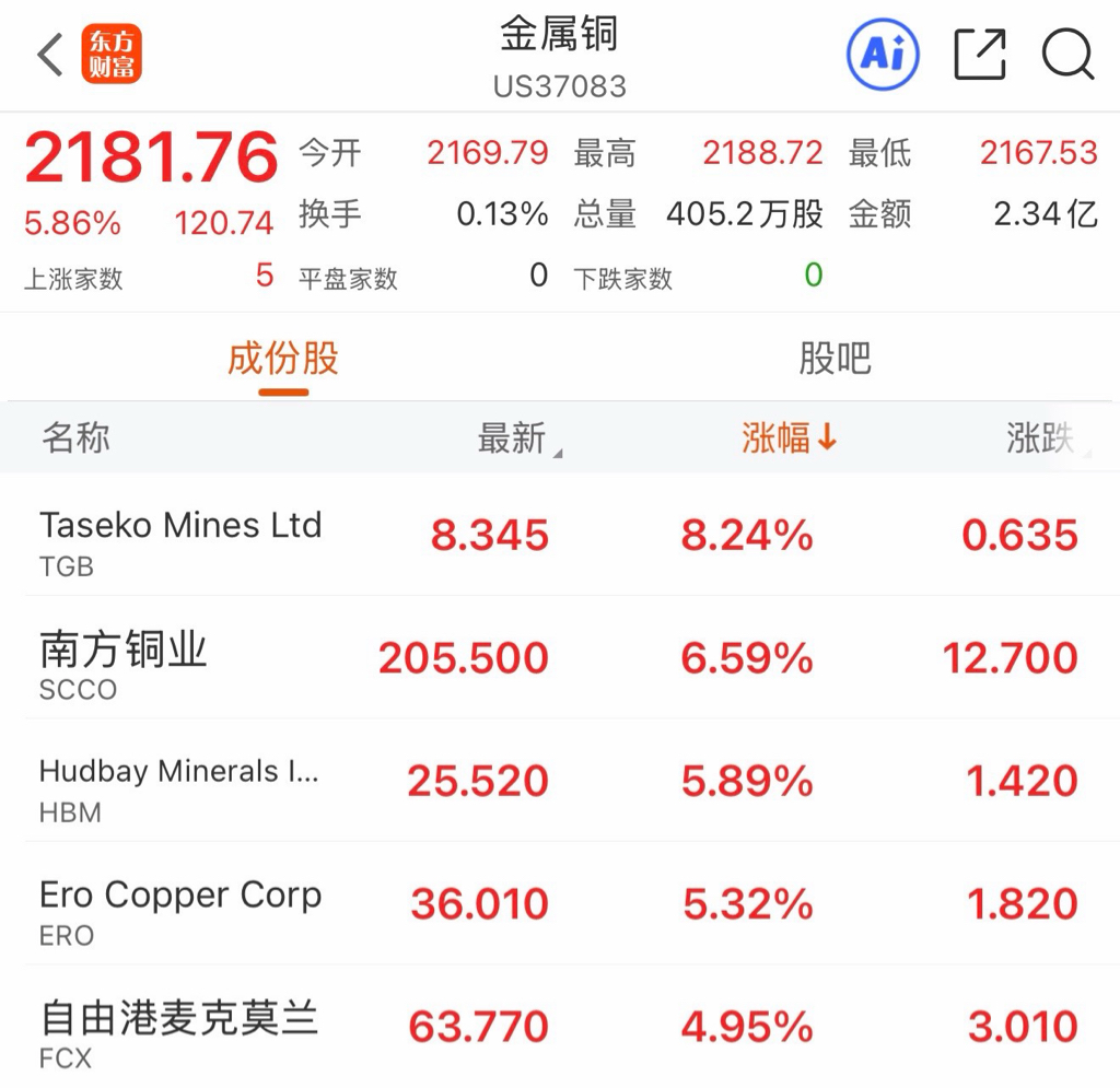 对岸铜股高开