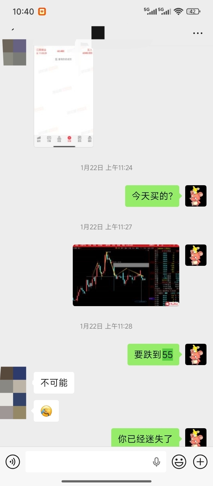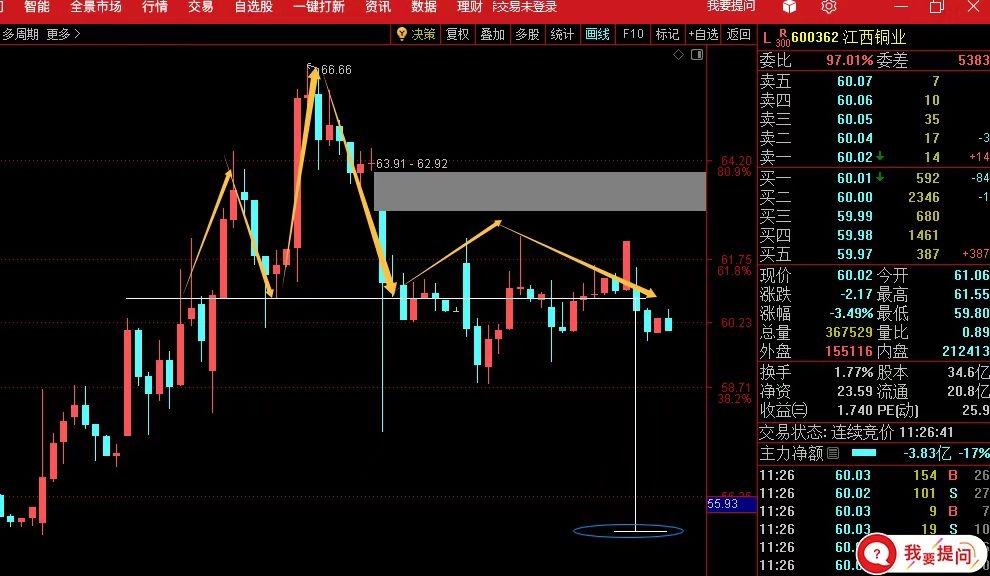 我有个同事60买了江铜,我和他说要跌到55非和我犟涨到了70没麦,跌倒64和他说