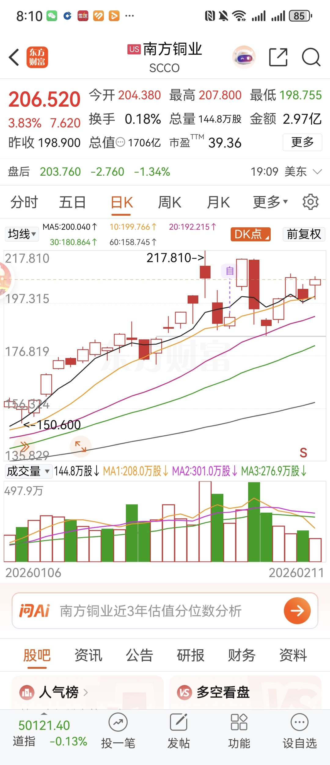 南方铜业快修复前高了,你啥时候摸一摸啊