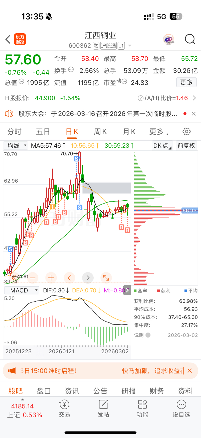 $江西铜业(SH600362)$ 套的人不少啊,紫金螺母都是80%左右的获利盘