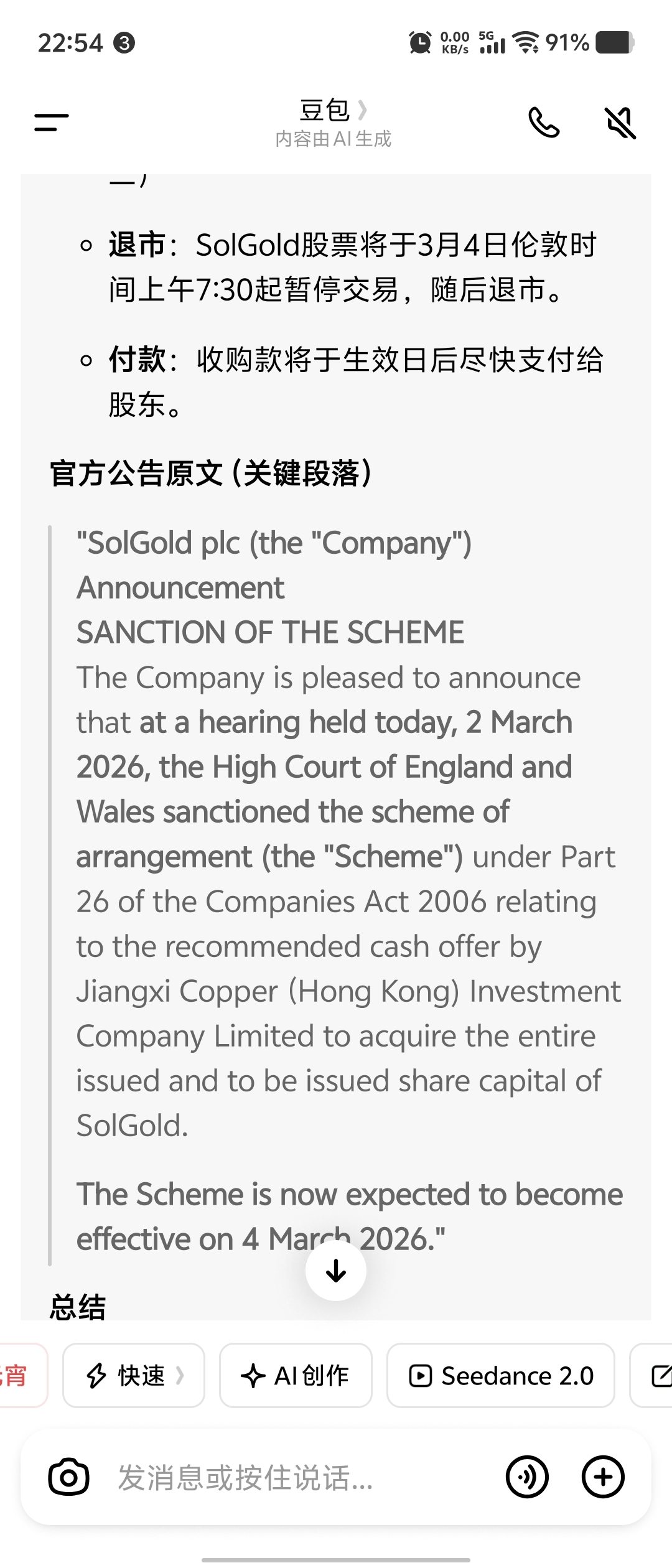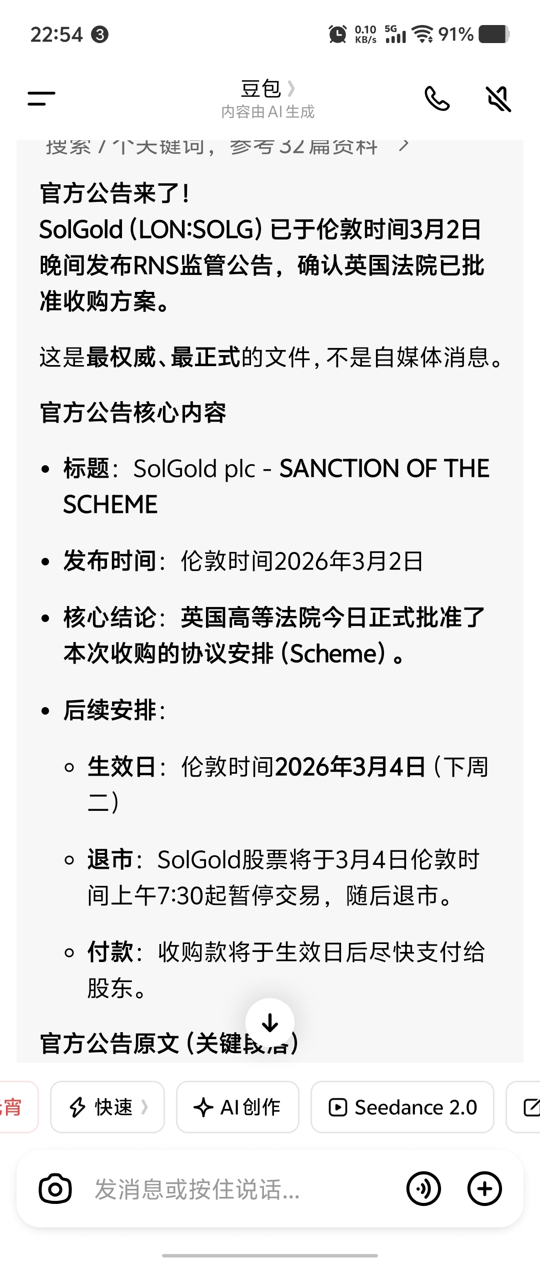 收购索尔金矿的公告刚刚发出来