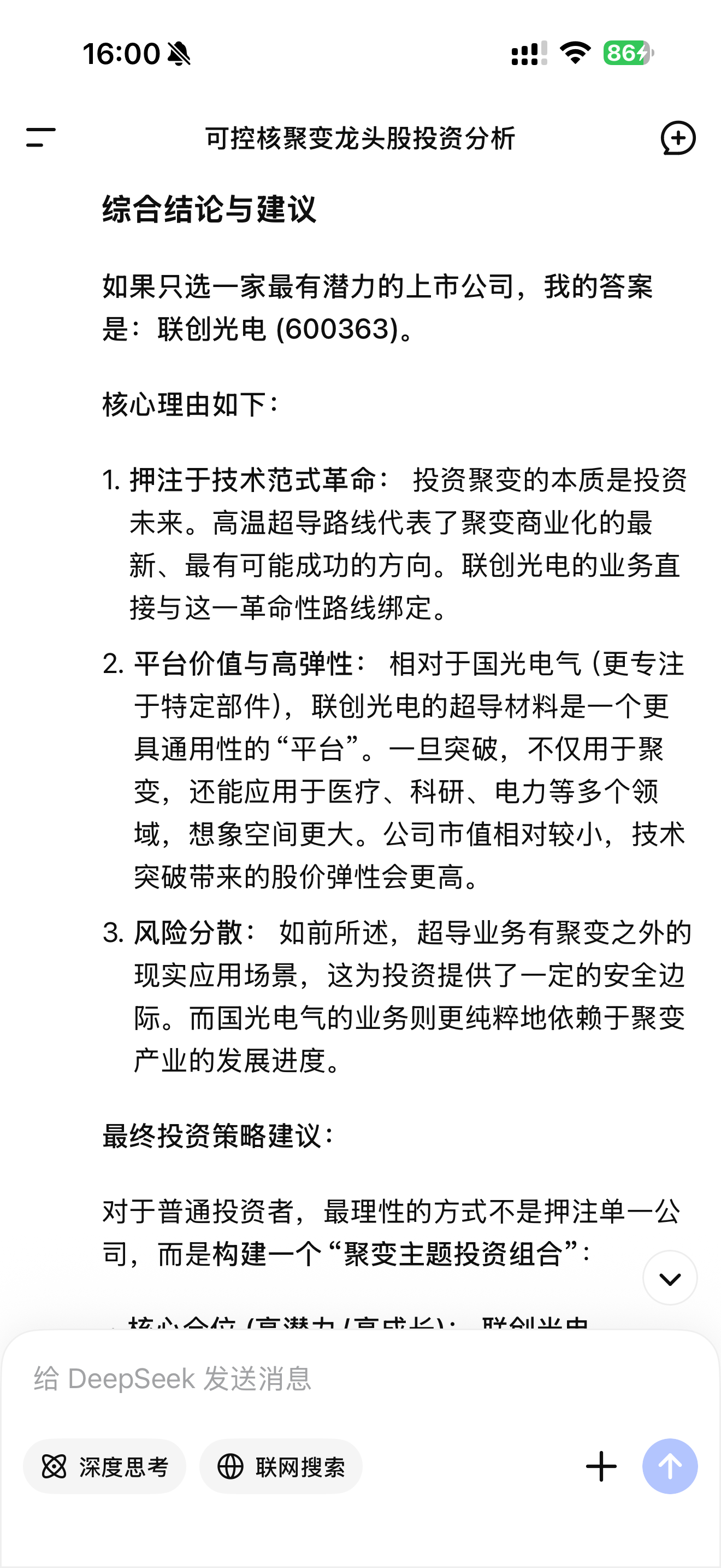 谁是核电超聚变最具潜力的公司?Deepseek给出了答案。
