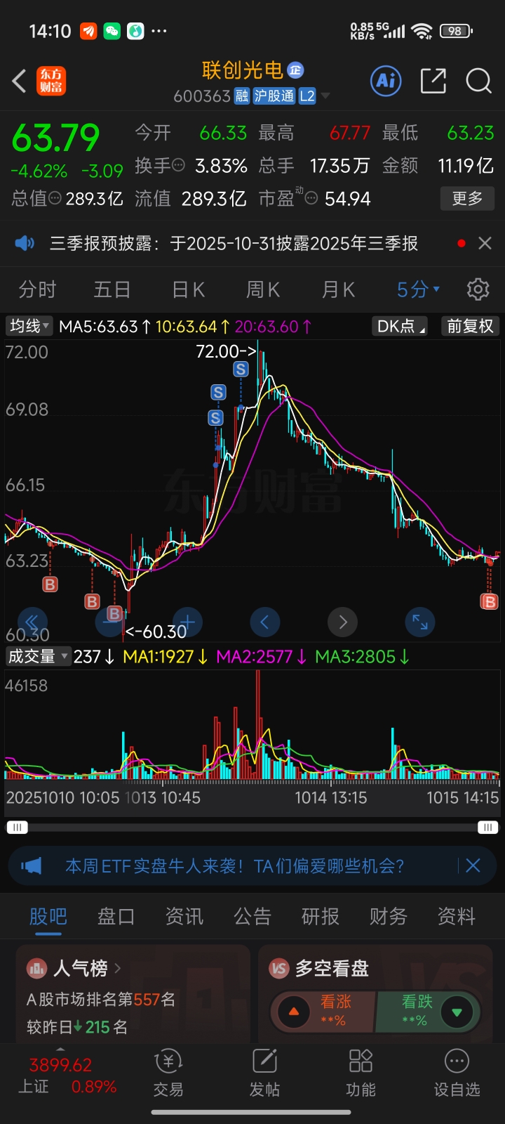 $联创光电(SH600363)$ 前天走了,今天抄底了,不错,不错!!!!看来留下的都没发财啊!