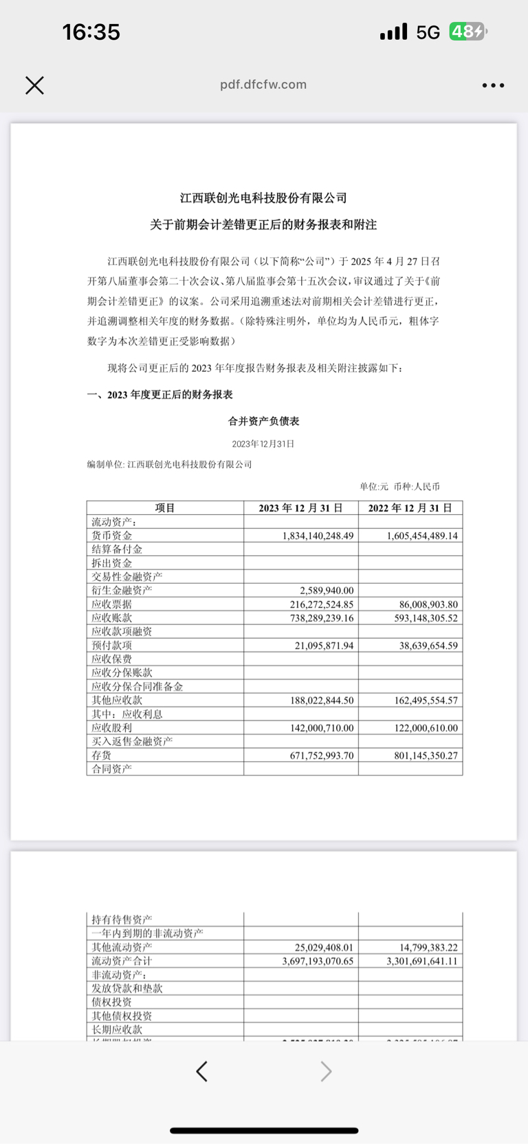 $联创光电(SH600363)$ 4月29日公告已经更正过