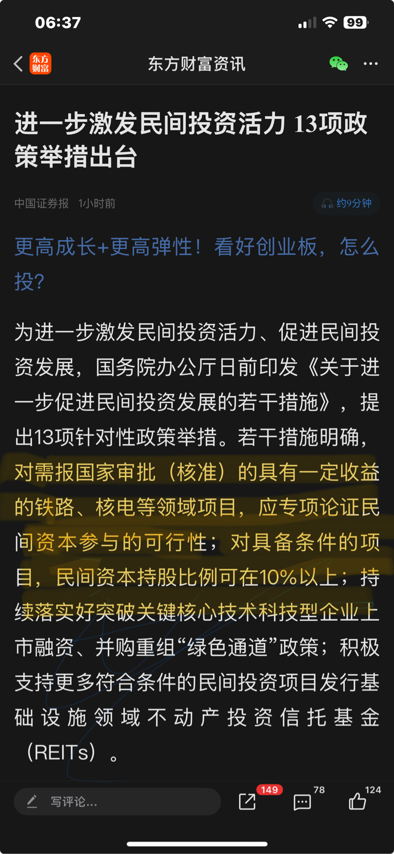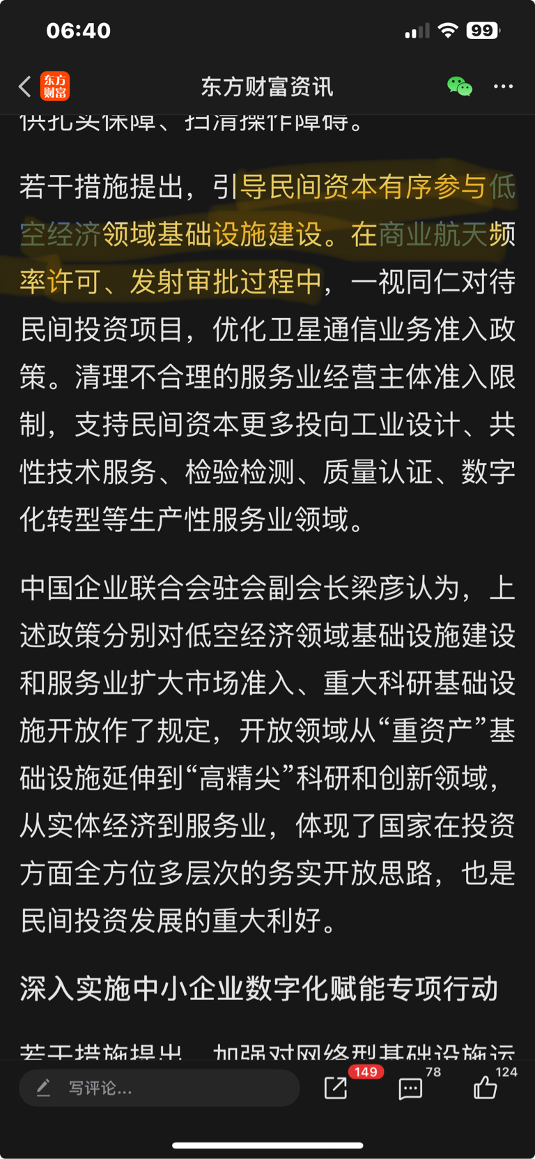 $联创光电(SH600363)$ 最新出台的投资新规对星火一号和航天发射合资公司审批通过有正面做用。