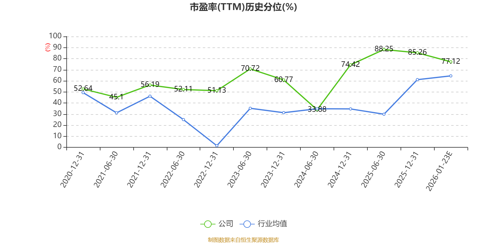 以本次披露业绩预告均值计算,公司近年市盈率(TTM)图如下所示: