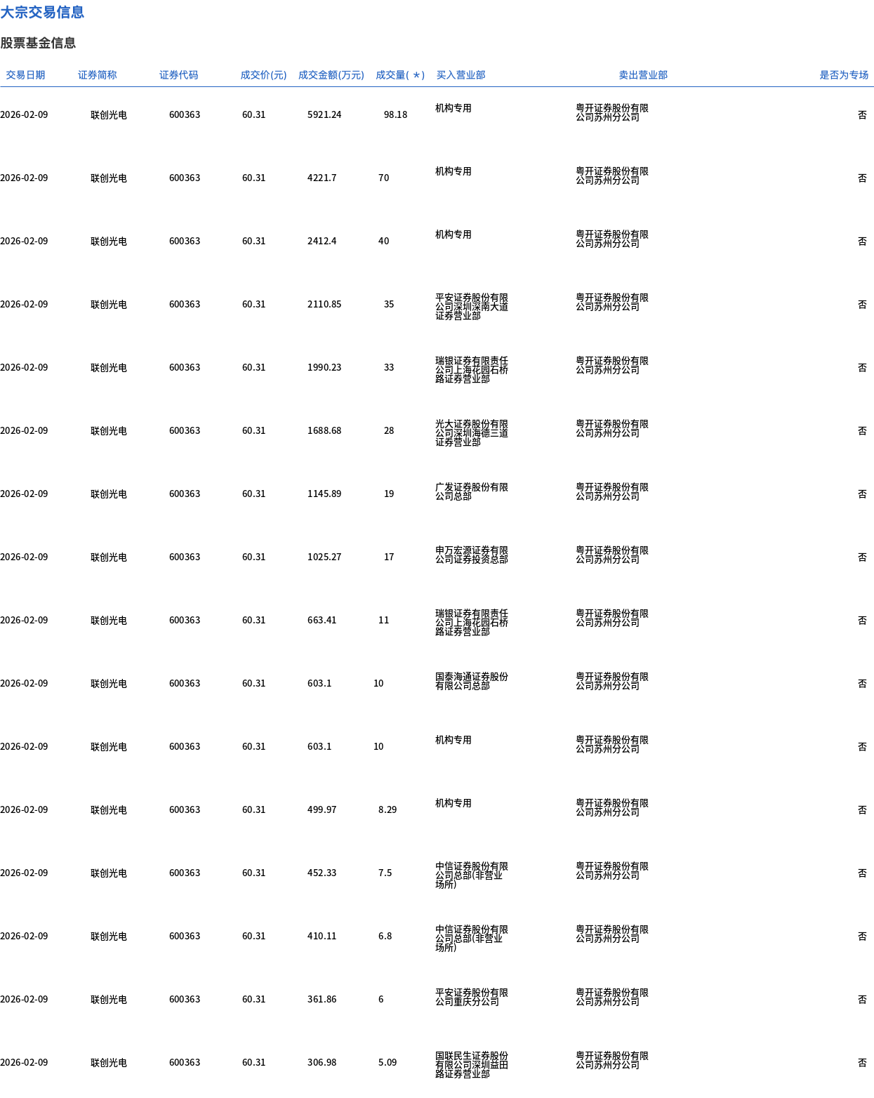 联创光电今日大宗交易折价成交455.84万股,成交额2.75亿元