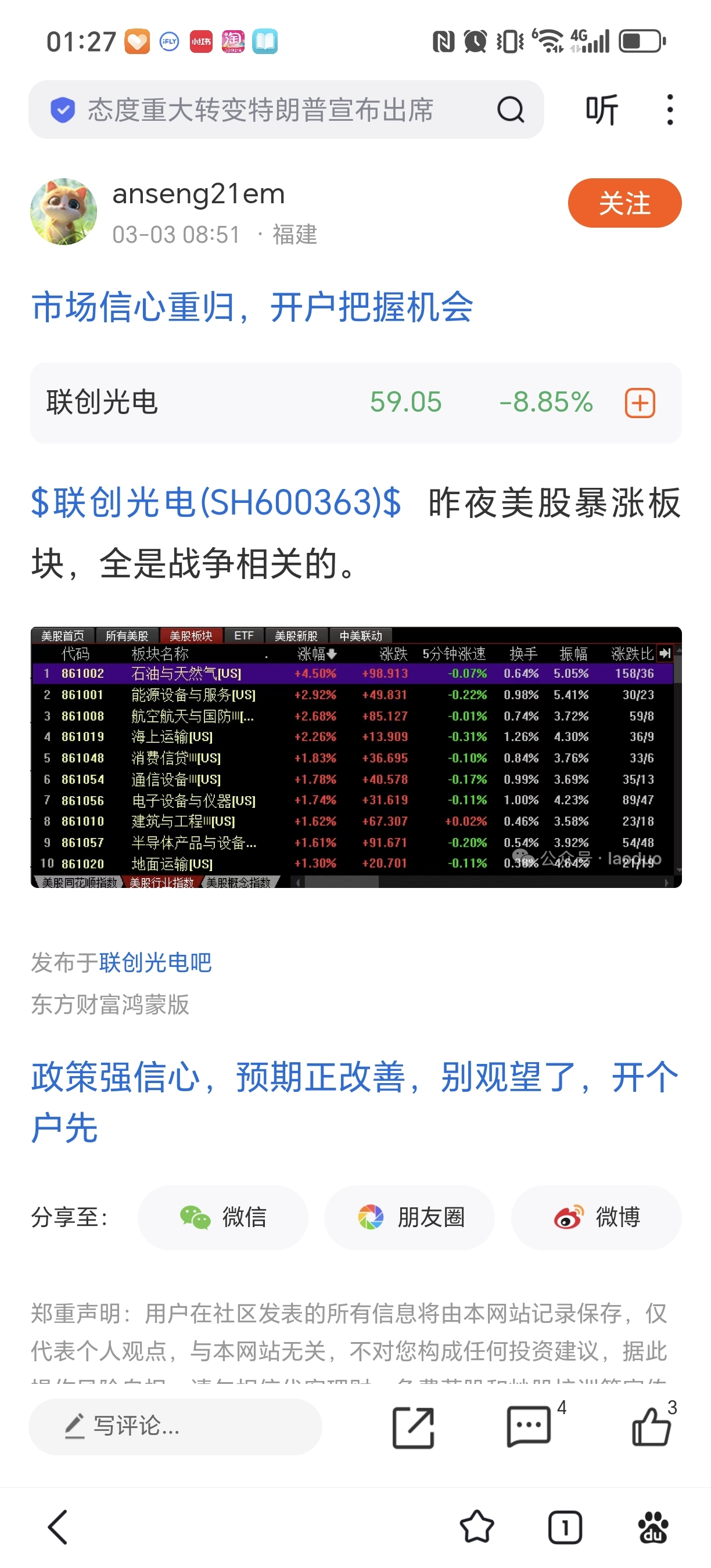 温馨提示: 1.根据《证券法》规定,禁止编造、传播虚假信息或者误导性信息,扰乱证券市场;2.用户在本社区发表的所有资料、言论等仅代表个人观点,与本网站立场无关,不对您构成任何投资建议。用户应基于自己的独立判断,自行决定证券投资并承担相应风险。《东方财富社区管理规定》