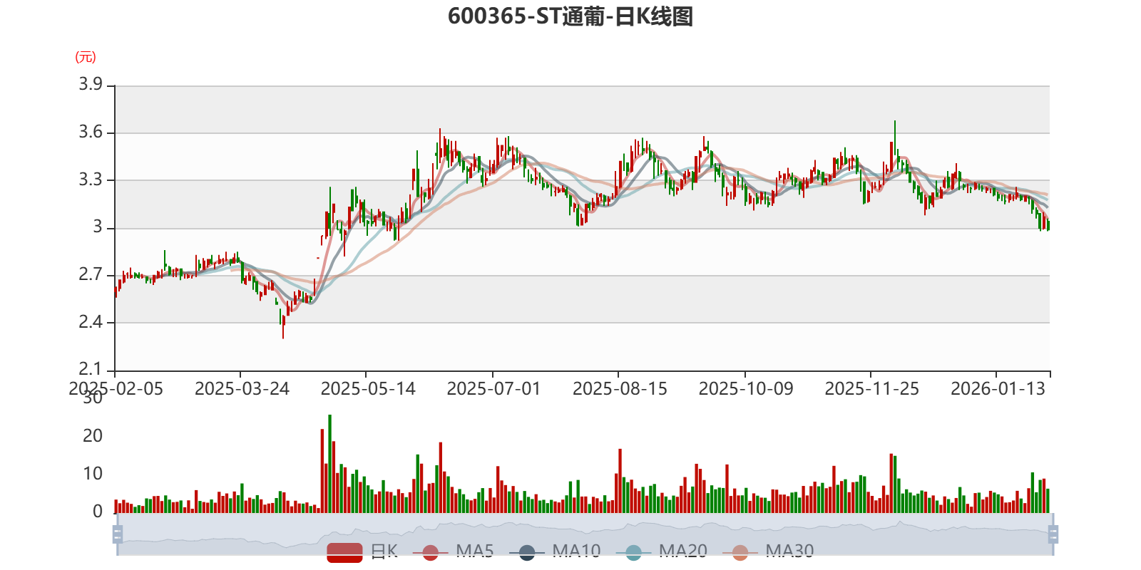 中证智能财讯 ST通葡(600365)1月30日晚间披露2025年度业绩预告,预计2025年归母净利润亏损5640万元至8460万元,上年同期亏损4988.21万元;扣非净利润亏损4940万元至7410万元,上年同期亏损3800.74万元。以最新收盘价计算,市净率(LF)约5.18倍,市销率(TTM)约1.75倍。