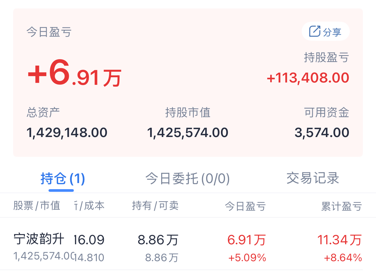 $宁波韵升(SH600366)$ 我怕风浪大?风浪越大鱼越贵!