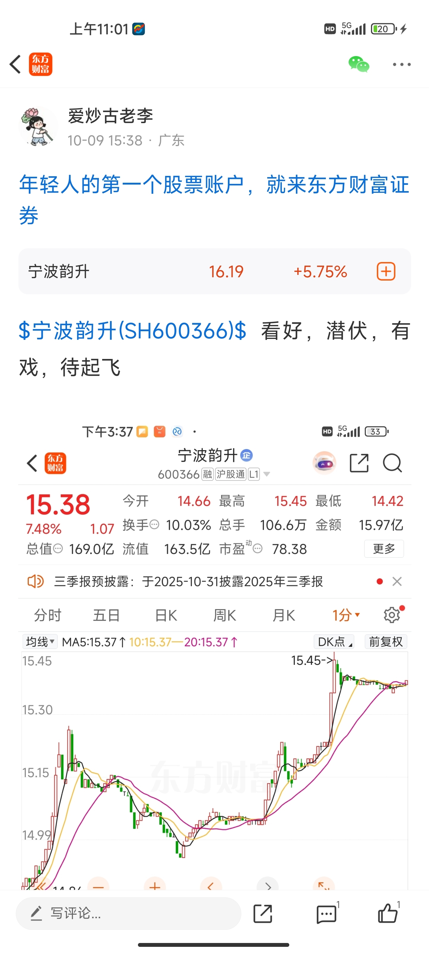 $宁波韵升(SH600366)$ 我就说能吃上肉吧,真吃上肉了,先撤退,你们继续吃肉。计划其它方向了
