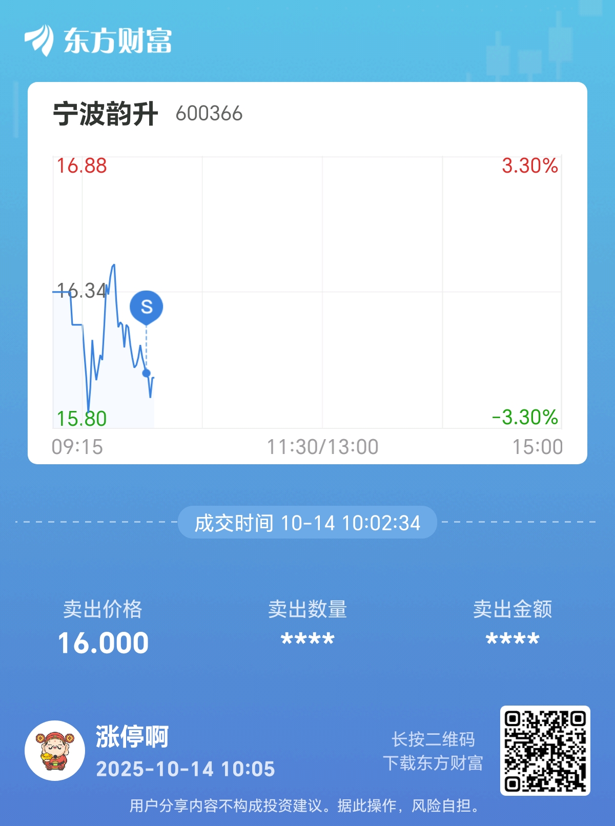 $宁波韵升(SH600366)$ 我跑了,太拉了这