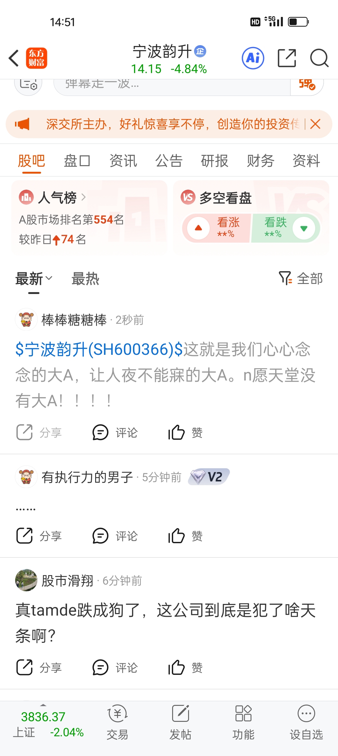 $宁波韵升(SH600366)$ 呵呵,走了。来生再见。