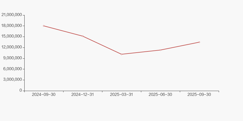 截至2025年9月30日,公司最新总股本为10.99亿股,其中流通股本为10.63亿股。户均持有流通股数量由上期的8051股下降至6764股,户均流通市值9.68万元。