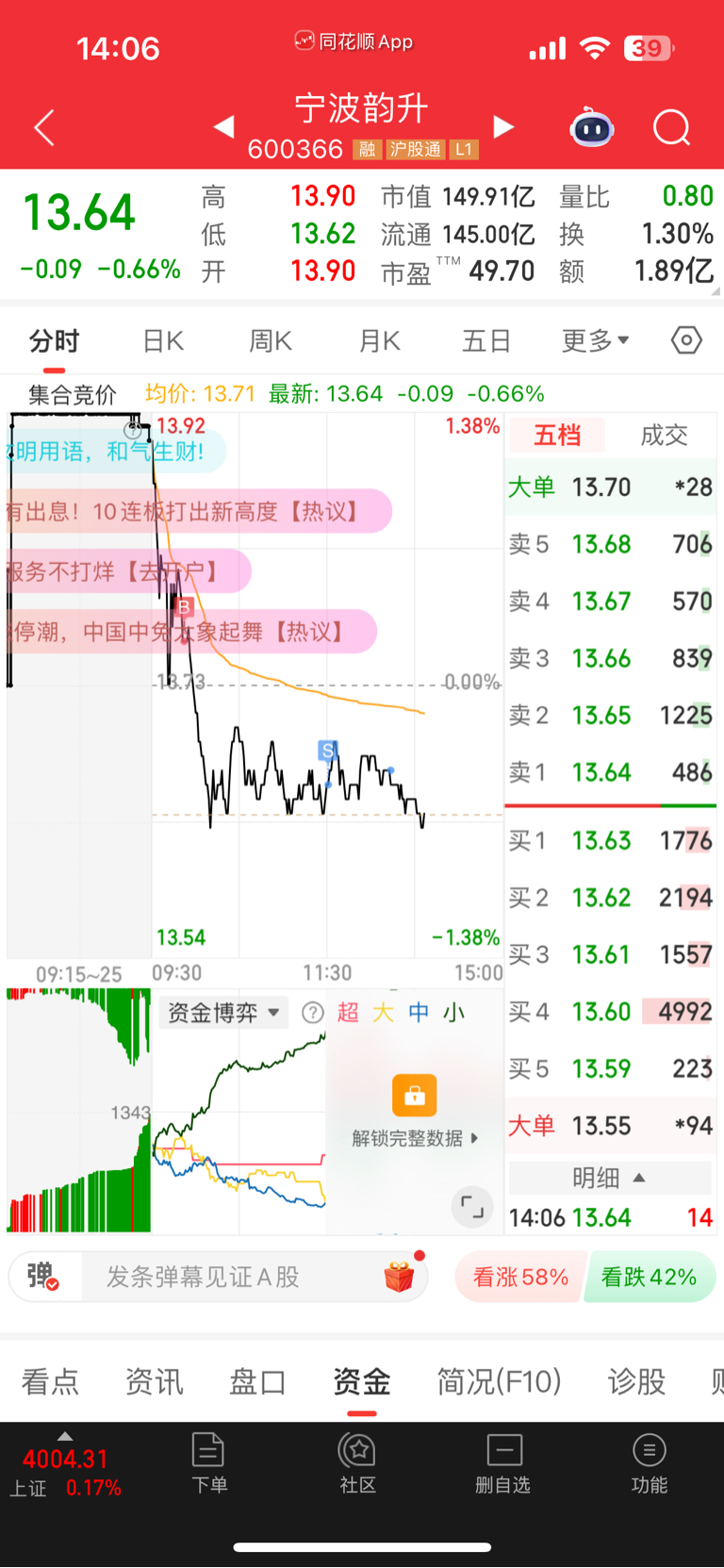 $宁波韵升(SH600366)$ 早上加仓判断失误,还是割了吧,不玩你这个LJ了,果断买入孩子王!