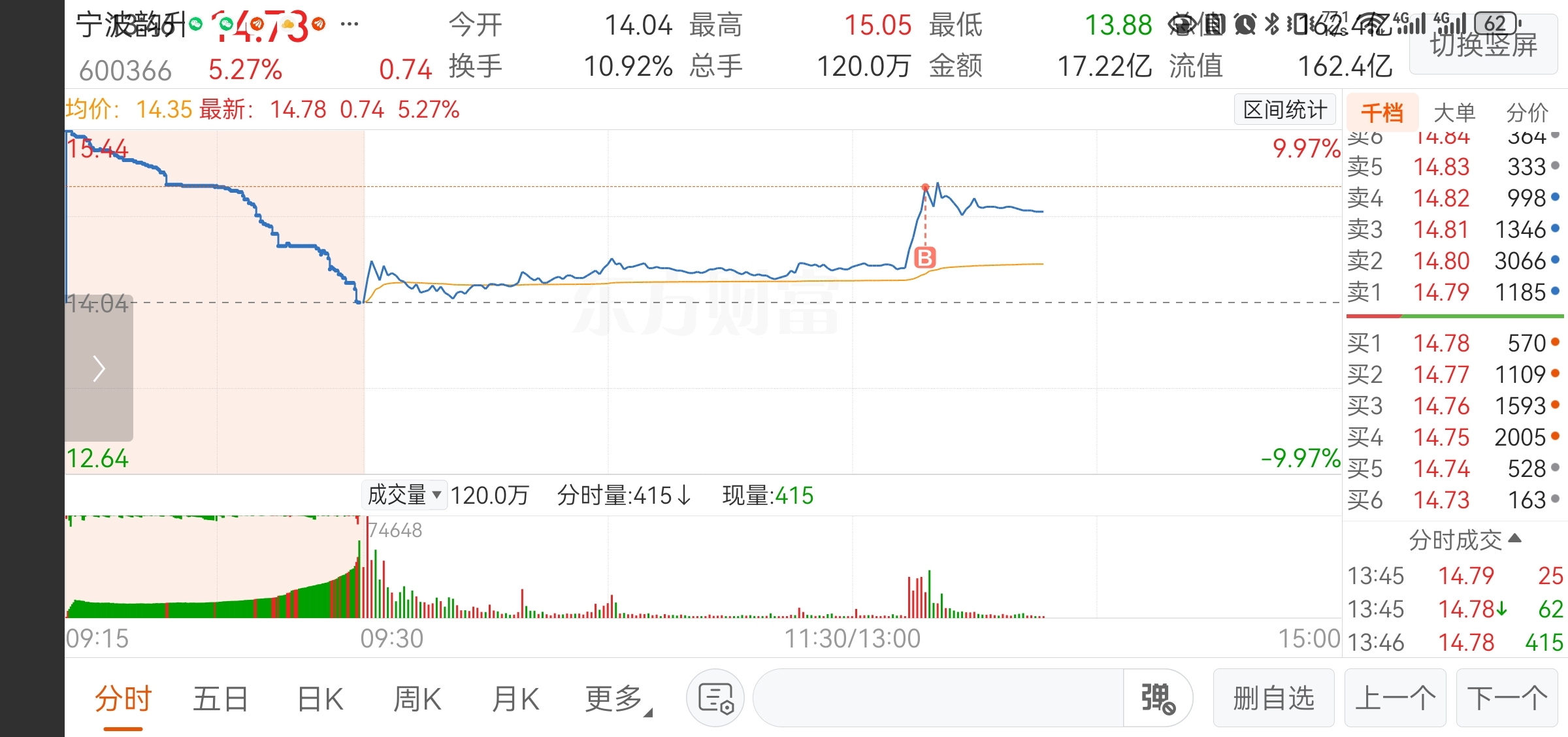$宁波韵升(SH600366)$ 错了,希望明天主力让我出来